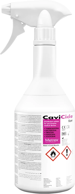 CaviCide ist ein praktisches, gebrauchsfertiges Zwischenstufen-Desinfektionsmittel für die Verwendung auf harten, nicht porösen Oberflächen von medizinischen und zahnmedizinischen Geräten. Es ist wirksam gegen Tuberkulose (TB), Viren, Bakterien und Pilze. CaviCide enthält nur 17 % Alkohol und ist daher weniger aggressiv als herkömmliche Produkte mit einem hohen Alkoholgehalt. Es wird empfohlen, vor der Verwendung von CaviCide die Gebrauchsanweisung zu lesen und sich über die lokalen Desinfektionsrichtlinien zu informieren.