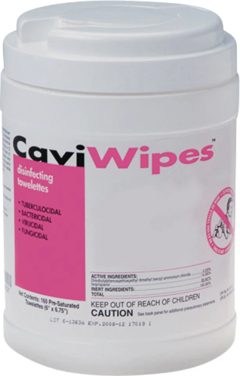 CaviWipes sind gebrauchsfertige Einweg-Desinfektionstücher, die zur effektiven Entfernung von Verschmutzungen sowie schnellen Breitspektrum-Desinfektion bereits mit CaviCide Lösung getränkt sind. Jedes CaviWipes ist ein haltbares, nicht gewebtes, vollständig gesättigtes Wischtuch, das nicht austrocknet und sich während des Gebrauchs nicht zusammenknüllt.CaviWipes sind frei von Aldehyden, Phenolen, Bleichmitteln oder sonstigen giftigen Chemikalien. CaviWipes eignen sich für die Anwendung auf nicht-porösen Oberflächen von medizinischen Geräten, die schnell und umfassend desinfiziert werden müssen. Die durchdachte Formel mit niedrigprozentigem Alkohol (17 %) gewährleistet die fungizide, bakterizide, viruzide und tuberkulozide Desinfektion in nur 3 Minuten. CaviWipes sind als Flat Packs und in Kanistern erhältlich.