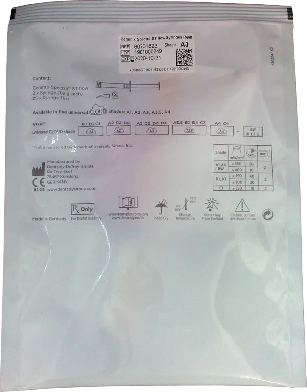 Ceram.x Spectra ST flow ist die ideale Ergänzung zum Universalkomposit Ceram.x Spectra ST und basiert ebenfalls auf der SphereTEC® Füllstofftechnologie. Es wurde speziell dafür entwickelt, die für den Behandler wichtigsten Bereiche zu optimieren: Handhabung, Ästhetik und Langlebigkeit. Ceram.x Spectra ST flow ist in insgesamt 5 Farben verfügbar, sowohl in Compula® Tips als auch in Spritzen.