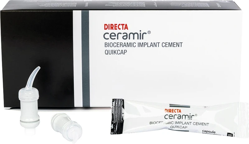 Der Hauptbestandteil besteht aus dem Pulver Calciumaluminat, und Flüssigkeit. Der Zement, der aufgrund einer chemischen Reaktion aushärtet, ist selbsthärtend. Bei Ceramir® Bioceramic Implant Cement QuikCap wird der Zement in einer Kapsel zum Mischen und zur direkten Anwendung geliefert. Für die Nutzung sind ein Kapselapplikator und ein Mischgerät erforderlich. Wir empfehlen den Ceramir Applicator 2.