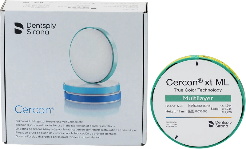 Die neue Multilayer Klasse verspricht monolithische Restaurationen auf höchstem Niveau. Perfekter, naturgetreuer Farbverlauf: Entspricht der Ästhetik eines natürlichen Zahnes ganz ohne Verblenden oder Bemalen. Insbesondere geeignet für den Frontzahnbereich (Biegefestigkeit 750MPa). Garantierte Farbsicherheit: Unübertroffene Farbsicherheit für alle 16 Vita Farben und BL2. Einfache Handhabung: Leicht zu nesten, identische Fräs- und Brennprotokolle wie bei allen Cercon-Zirkonoxidprodukten.