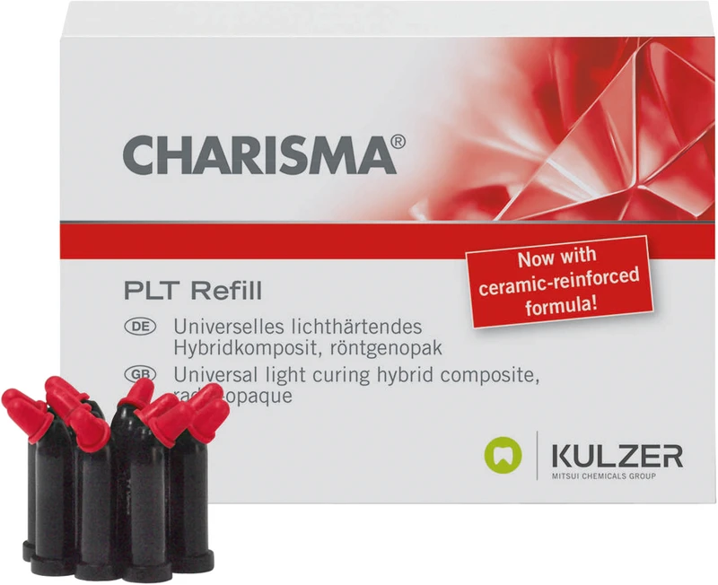CHARISMA® ist ein universell einsetzbares Feinstpartikel-Hybrid-Composite für Front- und Seitenzahnfüllungen der Kavitäten Klassen I bis V, Form- und Farbkorrekturen, Behandlung angeborener Zahnhartsubstanz-Defekte, Schienung traumatisch gelockerter Zähne, Milchzahnrestaurationen und Diastemenschluss. Das Material lässt sich leicht modellieren und ist ausgezeichnet an den Kavitätenrand adaptierbar. Durch den Füllstoff Microglass wird ein ausgeprägter Chamäleon-Effekt erzielt, der die Füllung harmonisch in die Umgebung einfügt. Nach der Polymerisation ist CHARISMA® abrasionsstabil bei maximaler Schonung des Antagonisten.