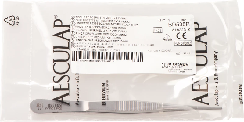 Chirurgische Pinzette. 1 x 2 Zähne, Unsteril, wiederverwendbar.