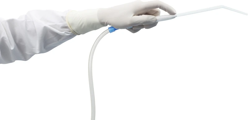 Praktischer und handlicher Schlauch aus transparentem PVC für Absaugungen bei chirurgischen Eingriffen. Der Schlauch ist geschützt gegen verdrehen und verbiegen. Er kann sowohl an dentale Behandlungseinheiten, als auch an zentralen Anlagen verwendet werden. Einzeln steril verpackt. Erhältlich ohne Saugspitze oder mit Yankauer-Kanüle. Länge ohne Saugspitze: 220 cm, Gesamtlänge mit Kanüle 250 cm.