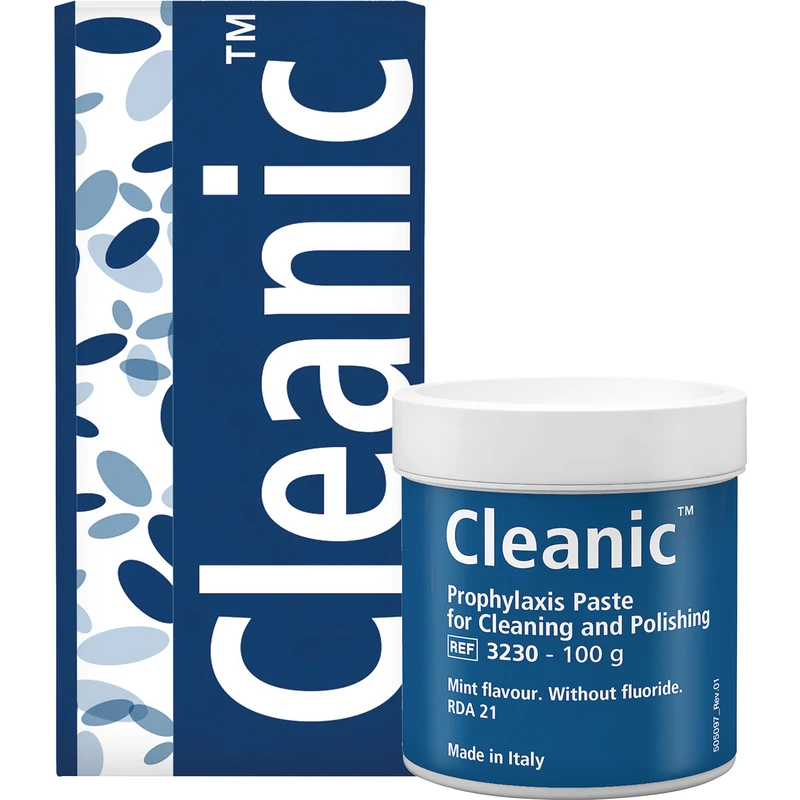 Cleanic ist eine Ein-Schritt-Prophy-Paste, die Ihrem Patienten hervorragende Reinigungs- und Politurresultate bei geringer Abrasion der Zähne in einem Schritt garantiert, und zwar aufgrund der klinisch bewährten integrierten Abrasionsvariabilität von natürlichen Perlit-Partikeln.Cleanic ist in verschiedenen Geschmacksrichtungen, mit oder ohne Fluorid, erhältlich. RDA 21.