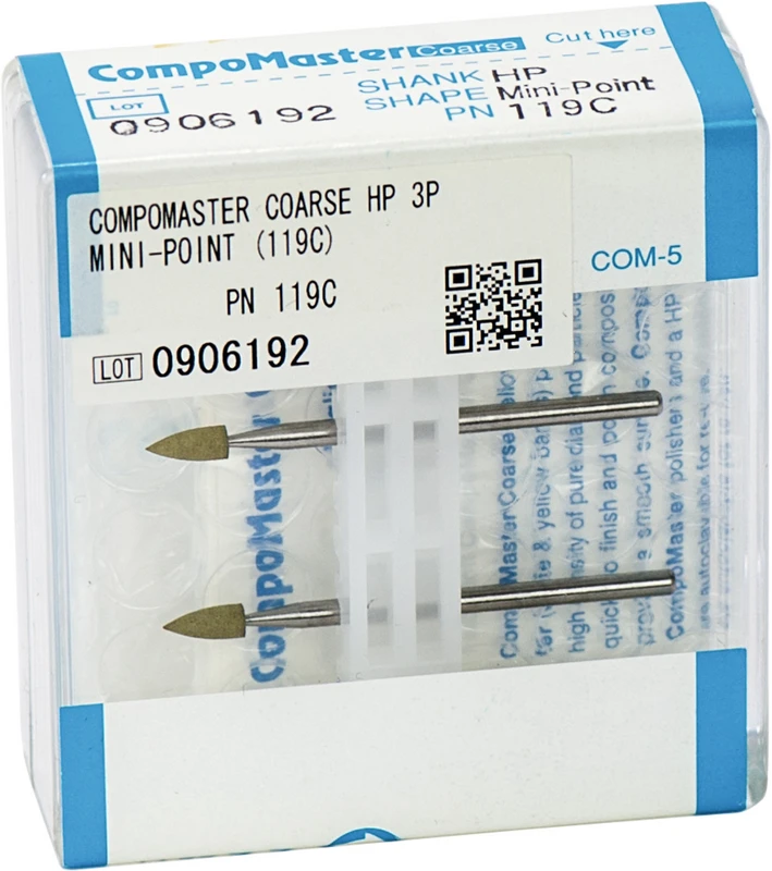 Die Silikonpolierer sind mit einer ausgewogenen Mischung reiner Diamantpartikeln imprägniert, haben eine lange Standzeit und eignen sich für die rasche Ausarbeitung und Politur von Komposit-Restaurationen sowie die Erzielung einer äußerst homogenen und glatten Oberfläche. Die unterschiedlichen Körnungen der groben CompoMaster Coarse in Kombination mit den feineren CompoMaster Polierern (mit gelber und weißer Schaftmarkierung) bilden ein effizientes Konzept für eine homogene Oberflächenbearbeitung. Die CompoMaster Coarse Polierer wurden entwickelt, um Kompositoberflächen zu konturieren und in einem Arbeitsgang vorzuglätten. Die so vorbereiteten Oberflächen werden dann mit den CompoMaster Instrumenten poliert.