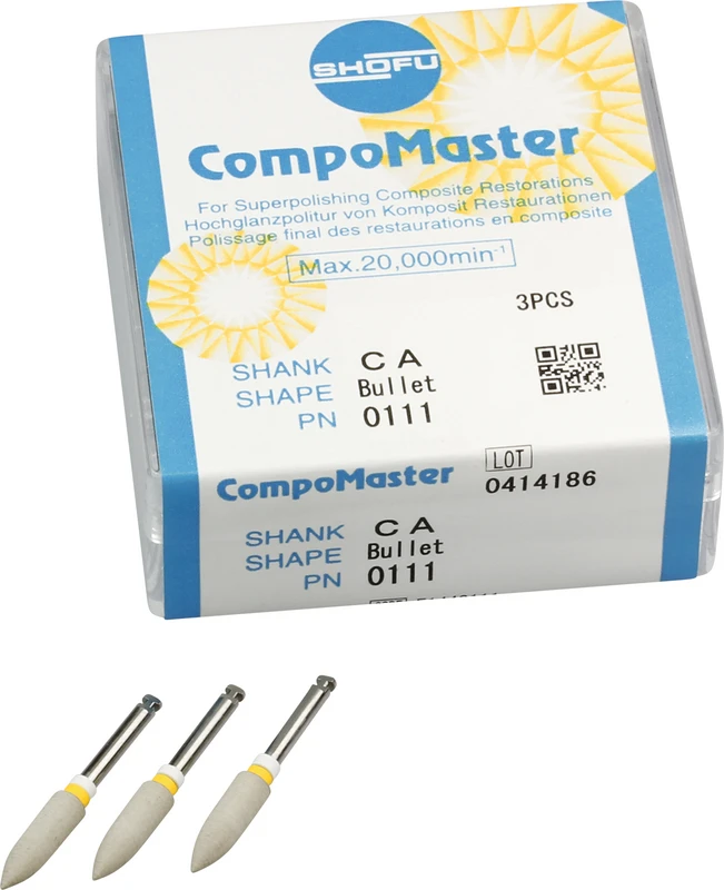 Die Silikonpolierer sind mit einer ausgewogenen Mischung reiner Diamantpartikeln imprägniert, haben eine lange Standzeit und eignen sich für die rasche Ausarbeitung und Politur von Komposit-Restaurationen sowie die Erzielung einer äußerst homogenen und glatten Oberfläche. Die unterschiedlichen Körnungen der groben CompoMaster Coarse in Kombination mit den feineren CompoMaster Polierern (mit gelber und weißer Schaftmarkierung) bilden ein effizientes Konzept für eine homogene Oberflächenbearbeitung. Die CompoMaster Coarse Polierer wurden entwickelt, um Kompositoberflächen zu konturieren und in einem Arbeitsgang vorzuglätten. Die so vorbereiteten Oberflächen werden dann mit den CompoMaster Instrumenten poliert.