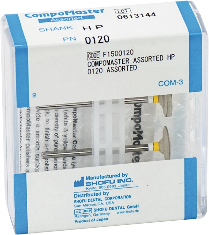 Die Silikonpolierer sind mit einer ausgewogenen Mischung reiner Diamantpartikeln imprägniert, haben eine lange Standzeit und eignen sich für die rasche Ausarbeitung und Politur von Komposit-Restaurationen sowie die Erzielung einer äußerst homogenen und glatten Oberfläche. Die unterschiedlichen Körnungen der groben CompoMaster Coarse in Kombination mit den feineren CompoMaster Polierern (mit gelber und weißer Schaftmarkierung) bilden ein effizientes Konzept für eine homogene Oberflächenbearbeitung. Die CompoMaster Coarse Polierer wurden entwickelt, um Kompositoberflächen zu konturieren und in einem Arbeitsgang vorzuglätten. Die so vorbereiteten Oberflächen werden dann mit den CompoMaster Instrumenten poliert.