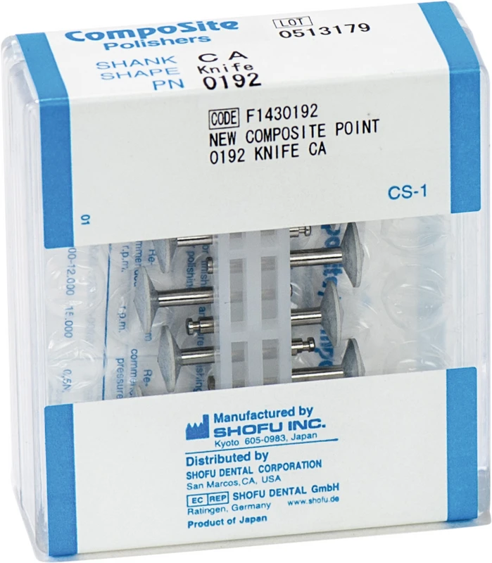 Ohne den Schmelz zu beschädigen, dienen die CompoSite Instrumente der Politur und Hochglanzpolitur von Komposit-Restaurationen. CompoSite Polierer werden zum Ausarbeiten und zur Vorpolitur verwendet, CompoSite Fine (mit weißer Schaftmarkierung) zur Politur. Die flexiblen und sich den Oberflächen anpassenden Kelche und Scheiben polieren sicher subgingivale und interproximale Oberflächen. Birne und Midispitze eignen sich besonders zum Polieren okklusaler und lingualer Oberflächen.Anwendungsbereich: