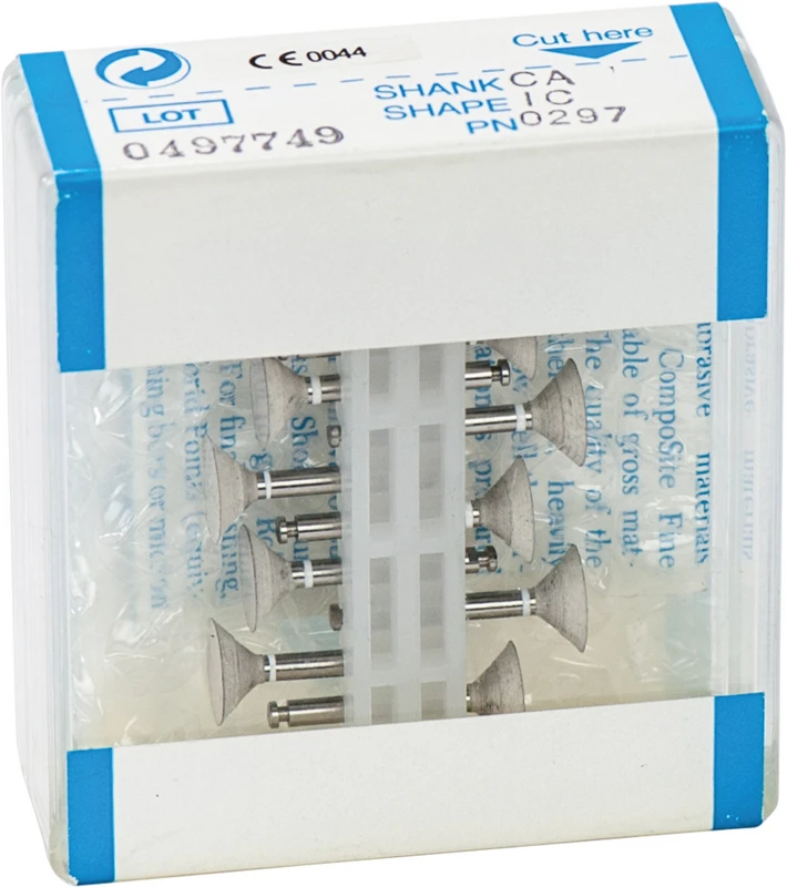 Ohne den Schmelz zu beschädigen, dienen die CompoSite Instrumente der Politur und Hochglanzpolitur von Komposit-Restaurationen. CompoSite Polierer werden zum Ausarbeiten und zur Vorpolitur verwendet, CompoSite Fine (mit weißer Schaftmarkierung) zur Politur. Die flexiblen und sich den Oberflächen anpassenden Kelche und Scheiben polieren sicher subgingivale und interproximale Oberflächen. Birne und Midispitze eignen sich besonders zum Polieren okklusaler und lingualer Oberflächen.Anwendungsbereich: