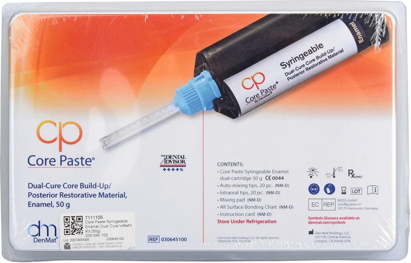 Core Paste ist seit Jahrzehnten das meistverwendete Präparat zum Aufbau von Kern- und Zahnstumpf. So wird, wenn Zahnsubstanz Mangelware ist, der Aufbaukunststoff Core Paste seit über 29 Jahren in der Kronen- und Brückenprothetik favorisiert. Core Paste ist auch mit Fluoridzusatz erhältlich. Farben: weiß, blau und zahnfarbe.