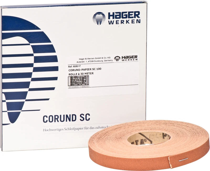 Fest angreifendes Schleifmaterial. Das spitze Korn bleibt lange erhalten und nutzt sich langsam ab. Auf 15 mm breiten Rollen.