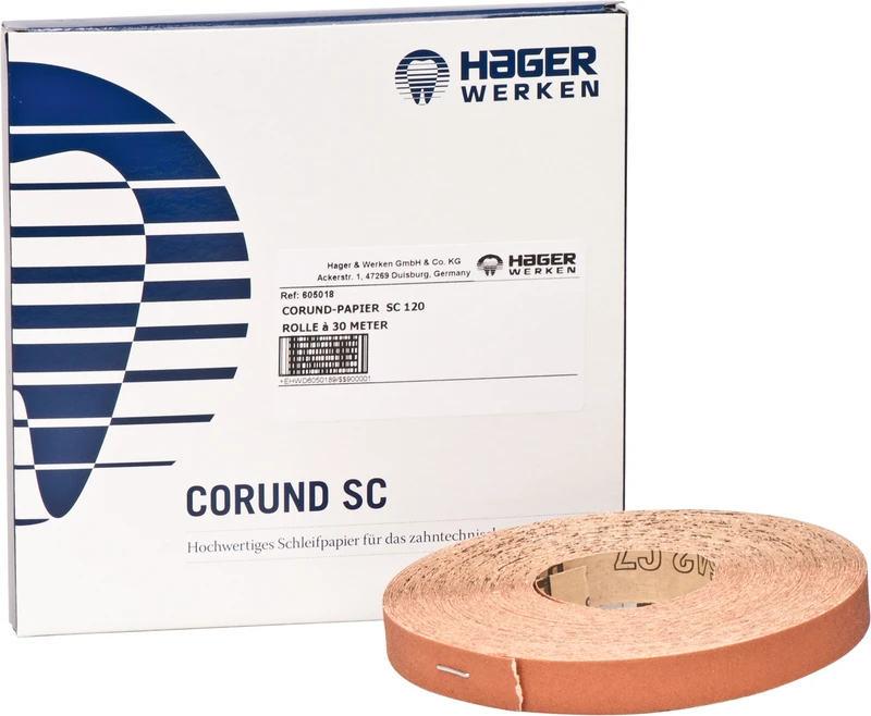 Fest angreifendes Schleifmaterial. Das spitze Korn bleibt lange erhalten und nutzt sich langsam ab. Auf 15 mm breiten Rollen.