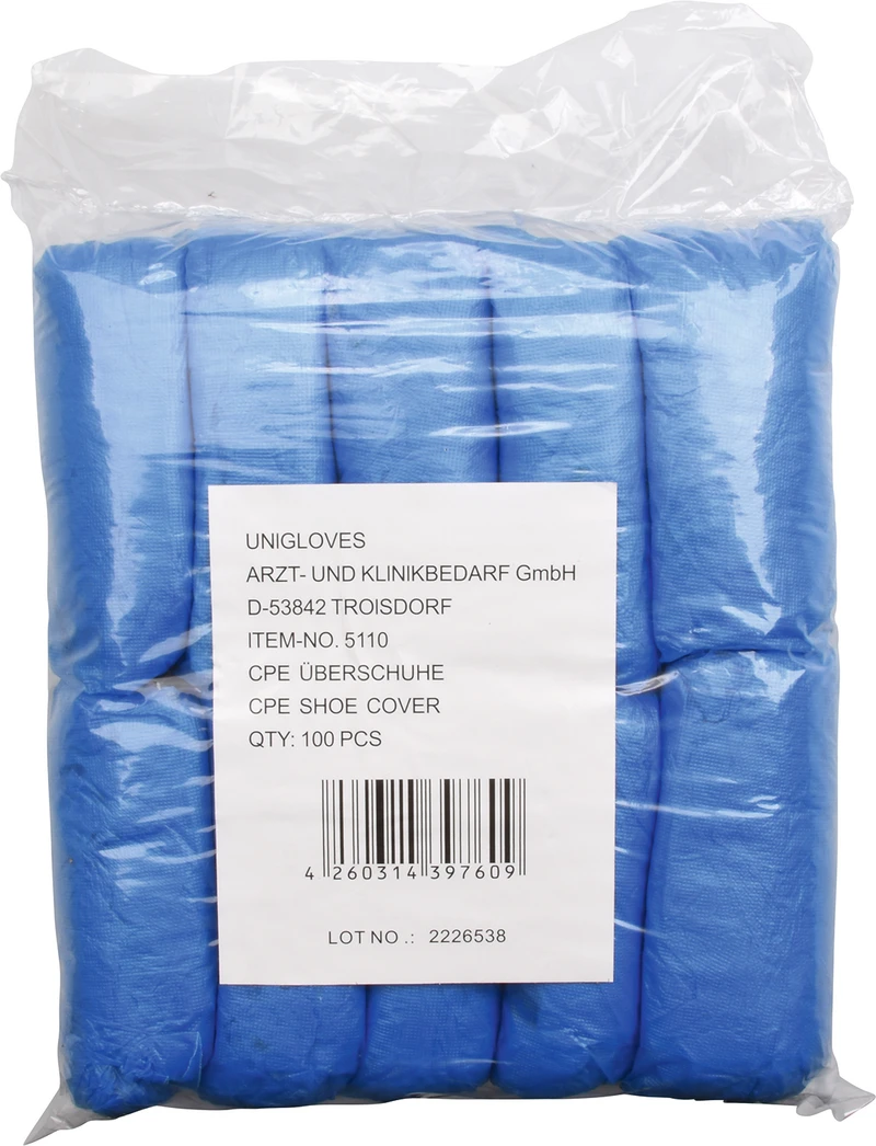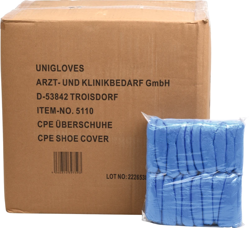 CPE-Überschuhe Karton 20 x 100 Stück blau, ca. 40 cm lang, Stärke 20 µm