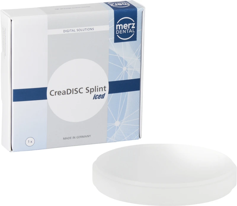 CreaDISC Splint iced ist ein validiertes thermoplastisches Acrylpolymer für alle Arten von Okklusionsschienen sowie Bohrschablonen mit hoch präziser Anpassung an die Zahnsituation und formstabil unter exakter Beibehaltung der Objektdimensionen. CreaDISC Splint iced ist mit PMMA-Kunststoffen erweiter und reparierbar.