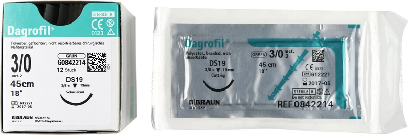 Dagrofil® Packung 12 Stück grün, 45 cm, DS19, 3\8 Kreis, schneidend, 19 mm, USP 3\0