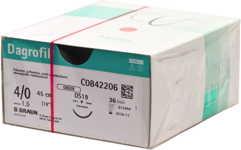 Dagrofil® Packung 36 Stück grün, 45 cm, DS19, 3\8 Kreis, schneidend, 19 mm, USP4\0