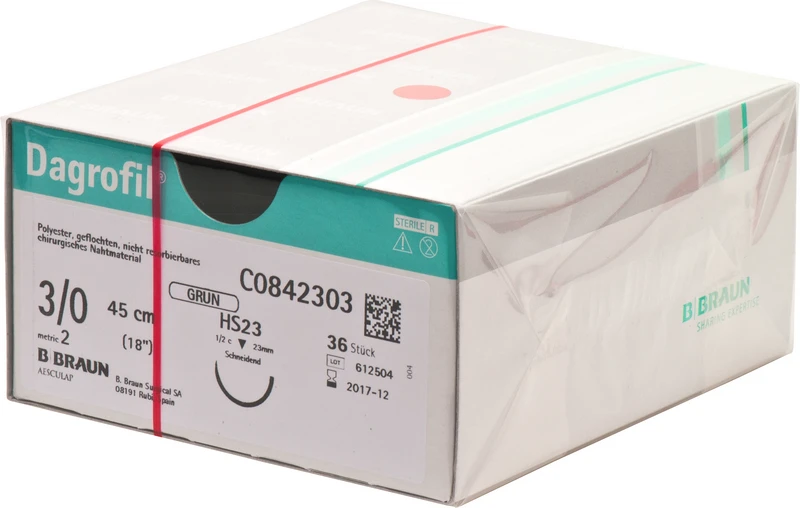 Dagrofil® Packung 36 Stück grün, 45 cm, HS23, 1\2 Kreis, schneidend, 23 mm, USP 3\0