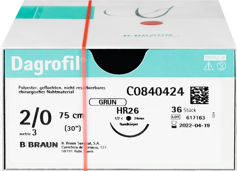 Dagrofil® ist ein nicht resorbierbares, geflochtenes Nahtmaterial aus Polyester.
