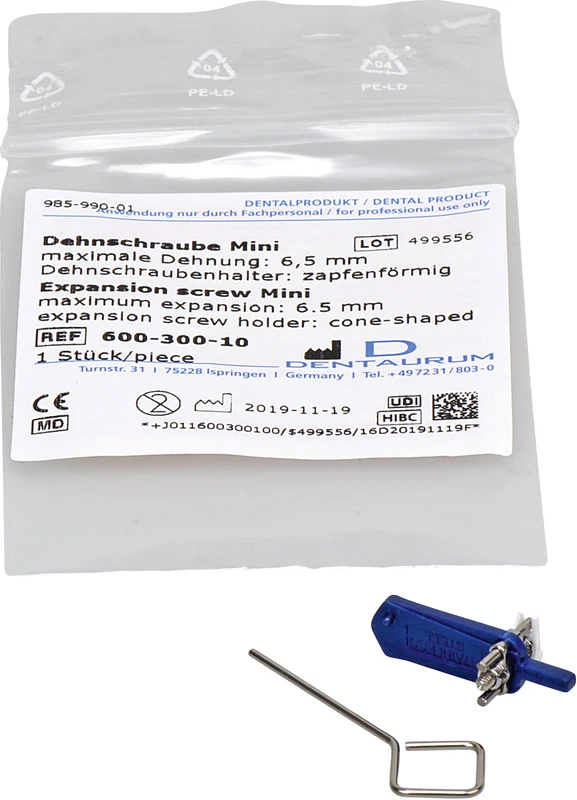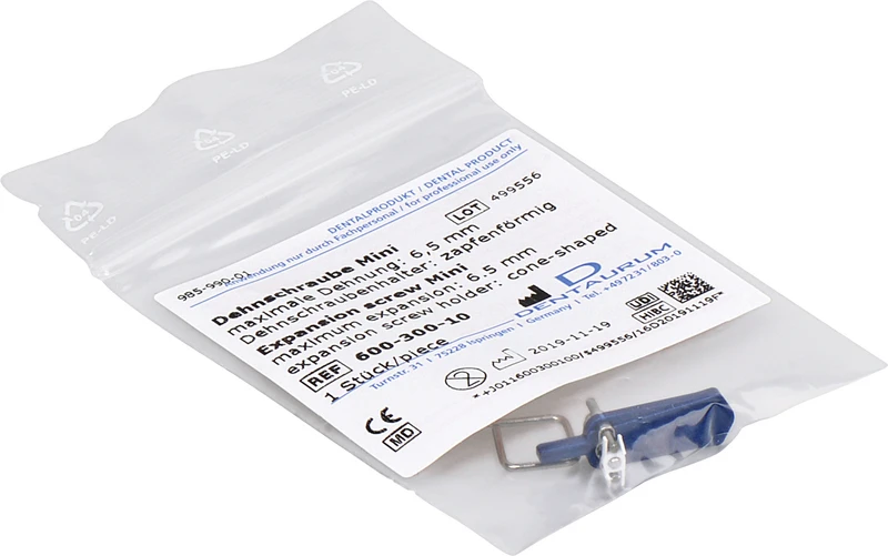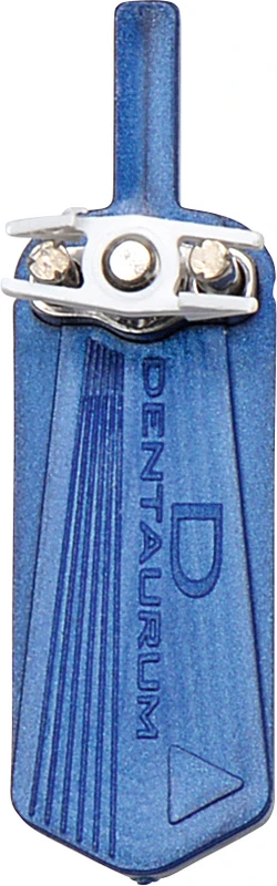 Mit zapfenförmigem Dehnschraubenhalter, skelettiert. Ausführung: extra kräftig, mit größerem Schraubenkörper. Dehnschraubenkörper mit Querbohrungen für die optimale Retention des Kunststoffes. Begrenzung des Dehnweges nach Erreichen der Maximaldehnung.