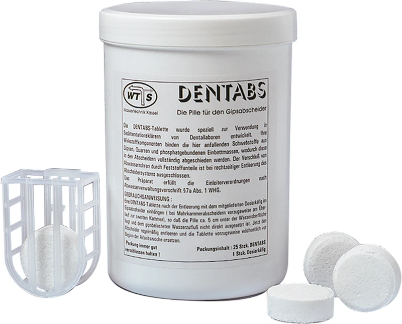 Die Tablette für den Gipsabscheider, bindet Gipse, Quarze und phosphatgebundene Einbettmassen. Verhindert den Verschluss von Abwasserrohren. Erleichtert die Reinigung des Abscheiders, vermindert den Fäulnisgeruch. Einfach mit dem Dosierkäfig in den Gipsabscheider einhängen. 1 Tablette reicht für 1 Woche.