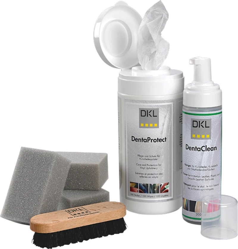 DentaClean reinigt schonend und problemlos verschmutzte Kunstleder- und Kunststoffoberflächen.