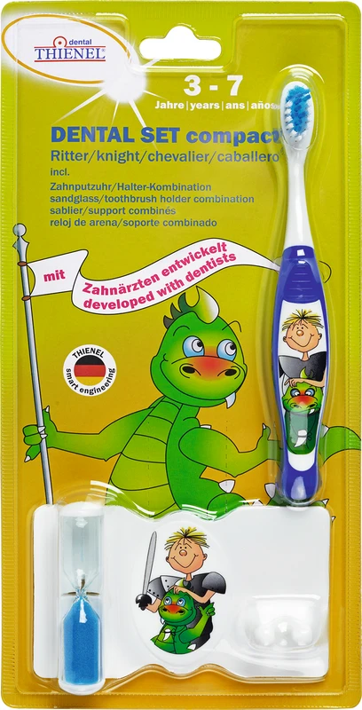 Produktinformationen "Dental Set compact Packung Ritter (1 Zahnbürste, 1 Zahnbürstenhalter mit Zahnputzuhr) blau"