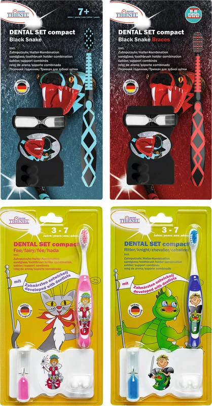 Das Set wird in einer ansprechenden Blisterverpackung geliefert. Die perfekte Motivationshilfe für das richtige Zähneputzen Ihrer kleinen Patienten. Einsetzbar als hochwertiges giveaway oder Verkaufsartikel.