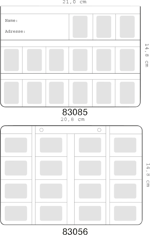 Durch Passgenauigkeit der einzelnen Felder ist ein Verschieben oder Herausfallen des Filmes auch bei starker Beanspruchung ausgeschlossen. Alle Taschen sind DIN A5 quer und aus filmneutraler Hart-Klarsichtfolie. Taschen zum Abheften haben eine Standardlochung für alle Ablagesysteme. Ausführungen mit Datenfeld werden mit einer dazu passenden Datenkarte geliefert.