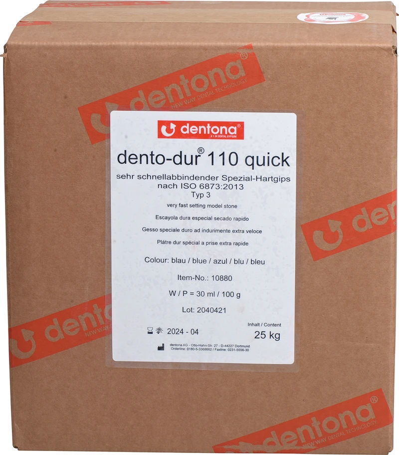 dento-dur® 110 ist ein Spezial-Hartgips nach DIN EN ISO 6873: 2013, Typ 3, schnell abbindend für KFO, Kunststoffprothetik, Reparatur- und Situationsmodelle.