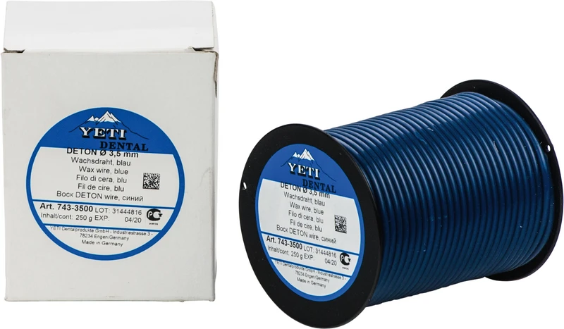 Mittelharter Wachs in blau. Unerwünschte Rückstellkräfte entstehen bereits bei der Herstellung von Wachsdraht. Über spezielle Extrusionsverfahren und ein darauf abgestimmtes mikromolekulares Wachs, ist es uns gelungen, einen spannungsfreien Wachsdraht anbieten zu können. Ein mittelharter Rollendraht mit höchster innerer Festigkeit, welcher rückstandslos verbrennbar ist.