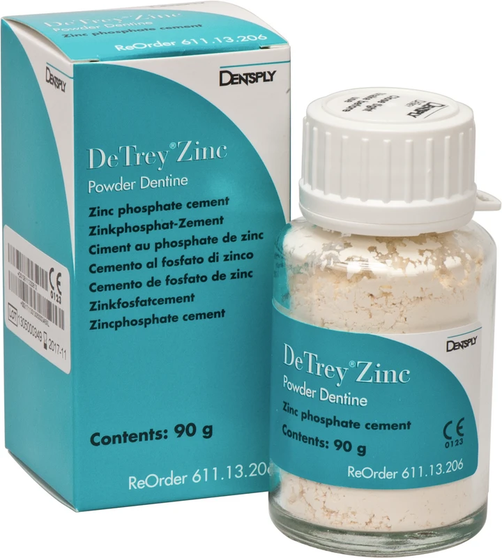 DeTrey® Zinc ist ein Zinkphosphatzement zur Befestigung von Gussfüllungen, Kronen, Brücken, kieferorthopädischen Bändern und kieferchirurgischen Schienungen, Unterfüllung in Verbindung mit Amalgam-, Komposit- und Silikatfüllungen, Aufbaufüllungen bei prothetischen Arbeiten.