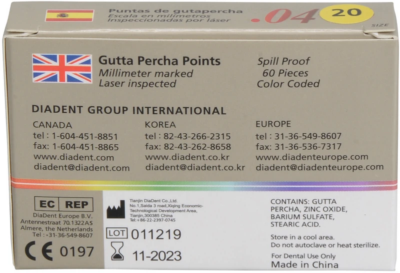 DiaDent® Dia-Pro Guttaperchaspitzen Packung 60 Stück Taper.04, ISO 020