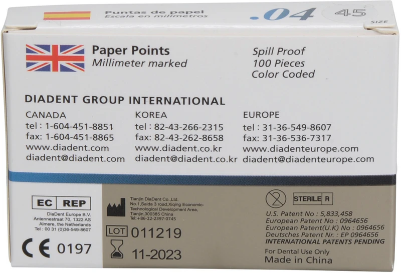 DiaDent® Dia-Pro Paper Points Packung 100 Stück Taper.04, ISO 045
