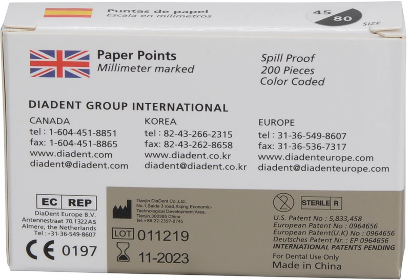 DiaDent® Papierspitzen Packung 200 Stück ISO 045-080