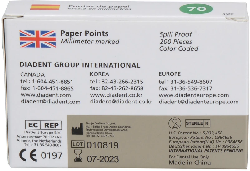 DiaDent® Papierspitzen Packung 200 Stück ISO 070