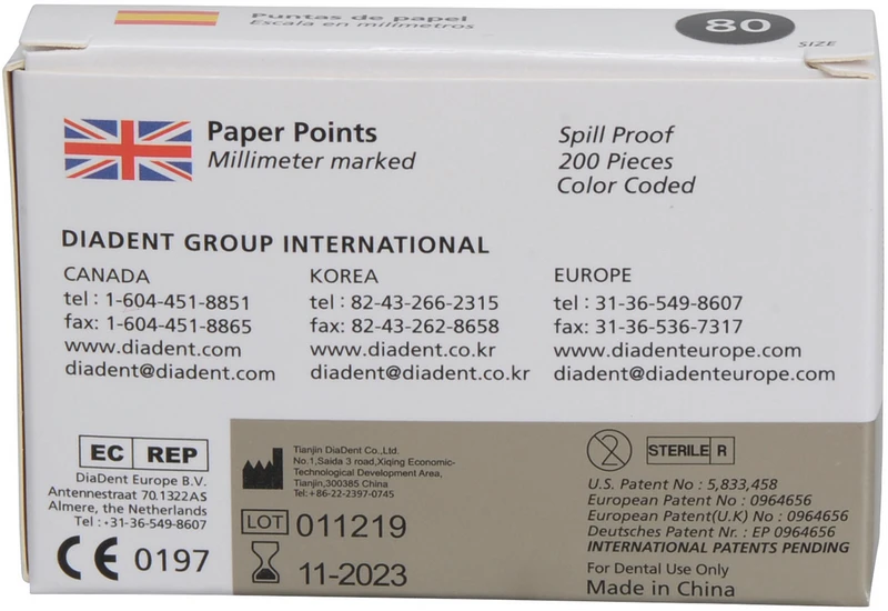 DiaDent® Papierspitzen Packung 200 Stück ISO 080