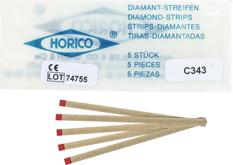 Produktinformationen "Diamant-Separierstreifen Packung 5 Stück C343 rot, Stärke 0,14 mm, 3 mm breit, 65 mm lang"