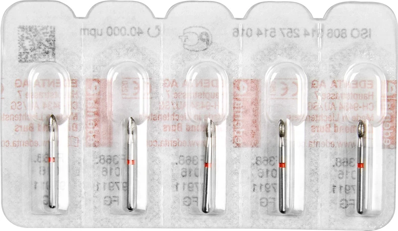 Packung 5 Diamanten rot fein, FG, Figur 257 Knospe, Kopflänge: 3,5 mm, ISO 016