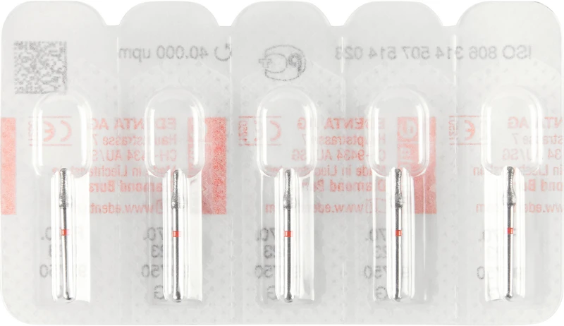 Packung 5 Diamanten rot fein, FG, Figur 507, Kopflänge: 6 mm, ISO 023