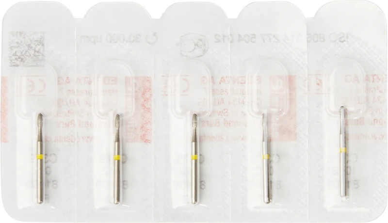 Produktinformationen "Diamanten 379 Packung 5 Stück gelb superfein, FG, Figur 277 Eiform, 3 mm, ISO 012"