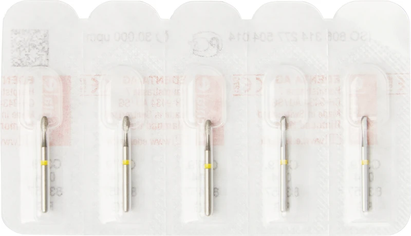 Diamanten 379 Packung 5 Stück gelb superfein, FG, Figur 277 Eiform, 3 mm, ISO 014
