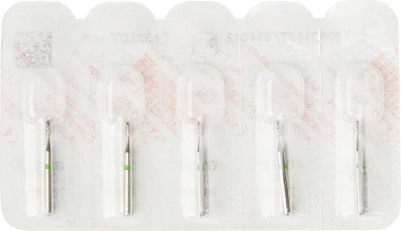 Produktinformationen "Diamanten 379 Packung 5 Stück grün grob, FG, Figur 277 Eiform, 3 mm, ISO 012"