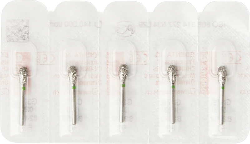 Produktinformationen "Diamanten 379 Packung 5 Stück grün grob, FG, Figur 277 Eiform, 5,5 mm, ISO 029"