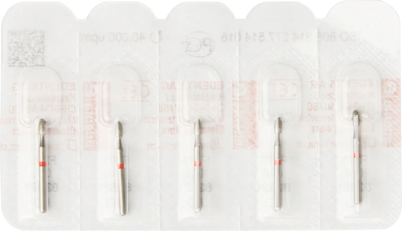 Packung 5 Diamanten rot fein, FG, Figur 277 Eiform, Kopflänge: 3,5 mm, ISO 016