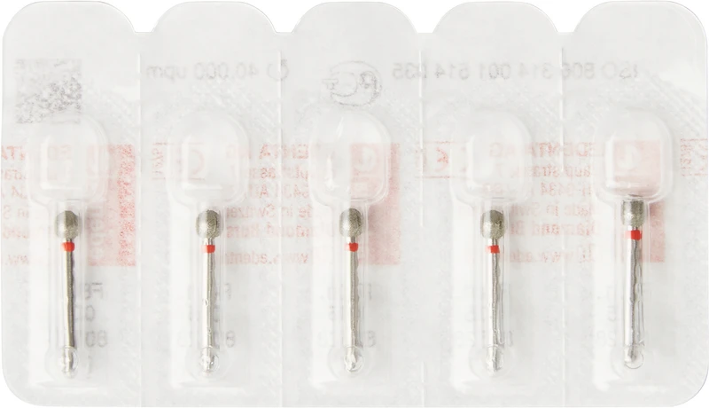 Packung 5 Diamanten rot fein, FG, Figur 001 Kugel, ISO 035