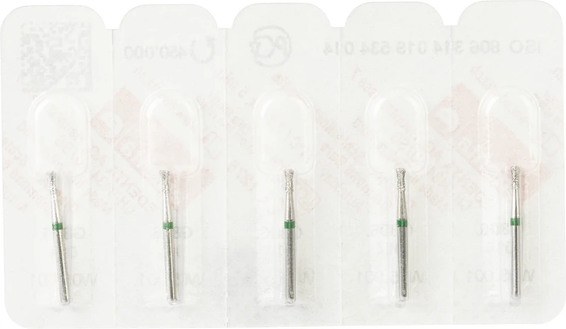 Diamanten 806 Packung 5 Stück grün grob, FG, Figur 019 umgekehrter Kegel mit Ansatz, 3 mm, ISO 014