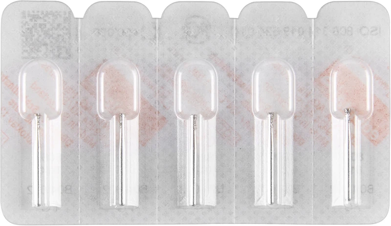 Packung 5 Diamanten Standard, FG, Figur 019 umgekehrter Kegel mit Ansatz, Kopflänge: 3 mm, ISO 014