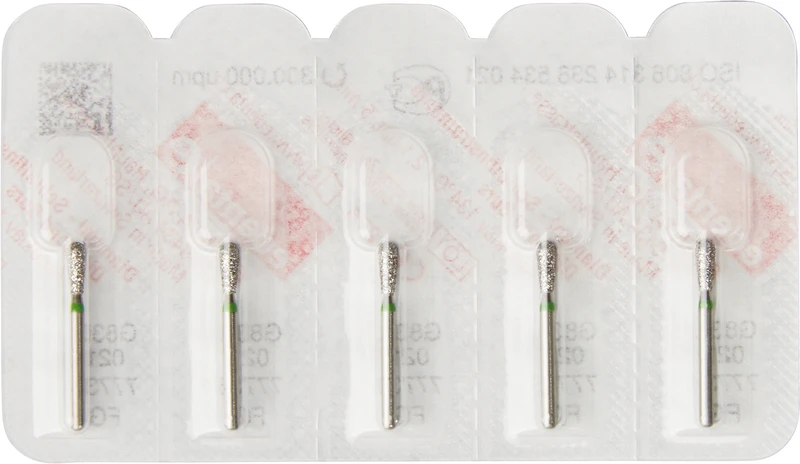 Produktinformationen "Diamanten 830 Packung 5 Stück grün grob, FG, Figur 238 Birne, 5,1 mm, ISO 021"