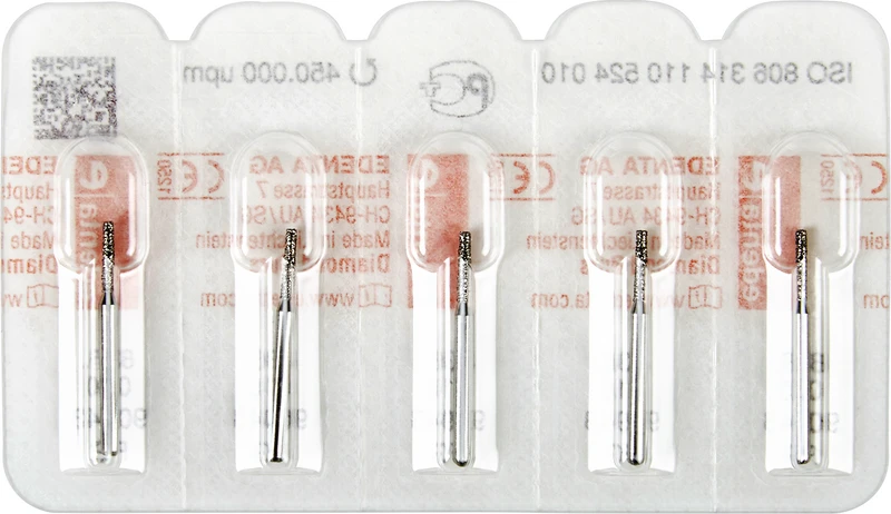 Packung 5 Diamanten Standard, FG, Figur 110 Zylinder flach, Kopflänge: 6 mm, ISO 010